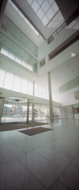 The focus on atrium spaces suited the medium, and I chose to work in colour to capture the specific lighting, and the pointed use of natural daylight that commonly features in atria.