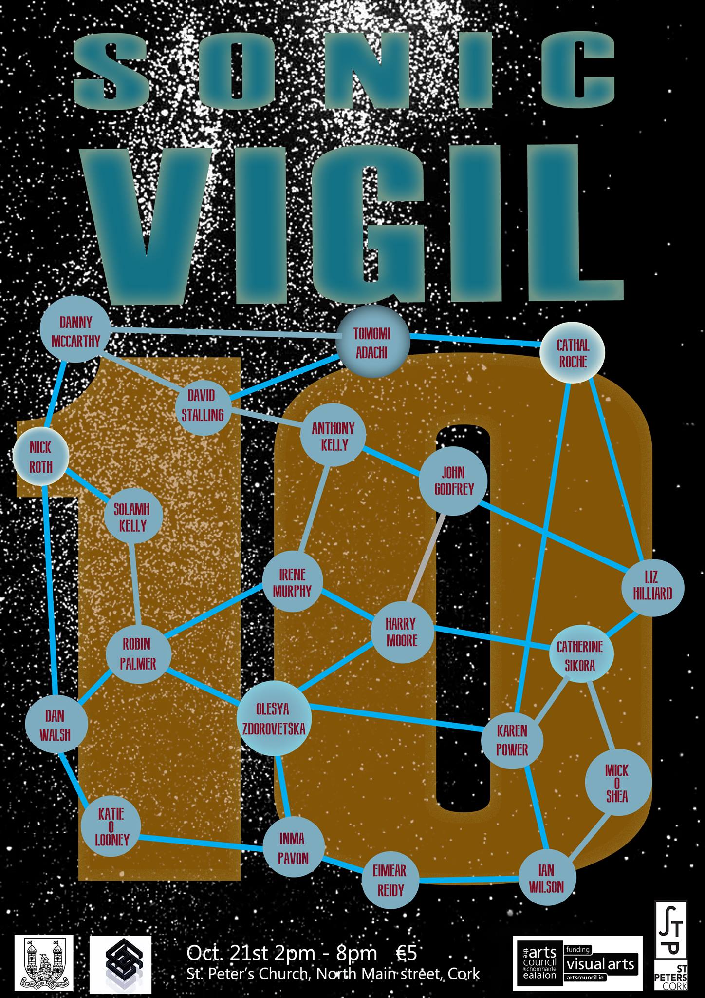 Sonic Vigil emerged from an increasingly vibrant Cork-based improvisation scene. It was founded in 2005 to create an annual celebration of radical musics unrepresented elsewhere in the country. It is a unique event that has taken place in some of Cork’s iconic cultural venues and has established Cork as Ireland’s leading centre for Sound Art, free improvisation and other forms of experimental music. Its influence and audience has spread beyond the Republic; recordings of previous Vigils are commercially available, and in 2016 members of the core Vigil team performed a ‘Vigilette’ in Berlin’s renowned improvisation venue, Ausland.