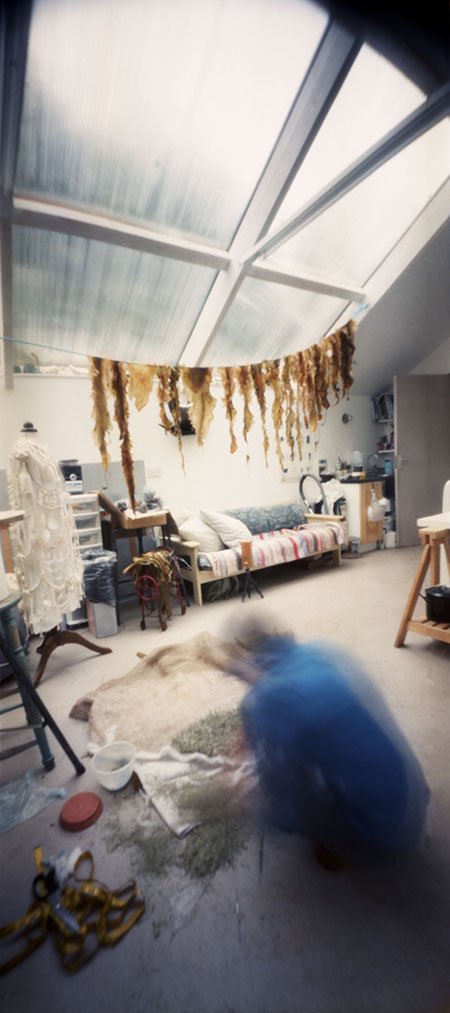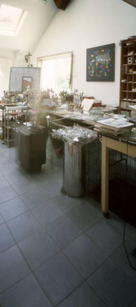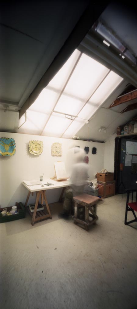 The project ‘Studio’ comprises an ongoing exploration into the liminal spaces of artistic creation. This particular series comprises of pinhole photographs which includes artists working in their studios in the Beara peninsula, Co. Cork.